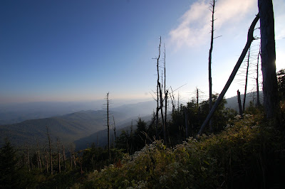 Then we drove up to Clingmans Dome and started the 1/2 mile hike to the observation tower. It's a steep trail with a 330ft gain. But, the views were spectacular.